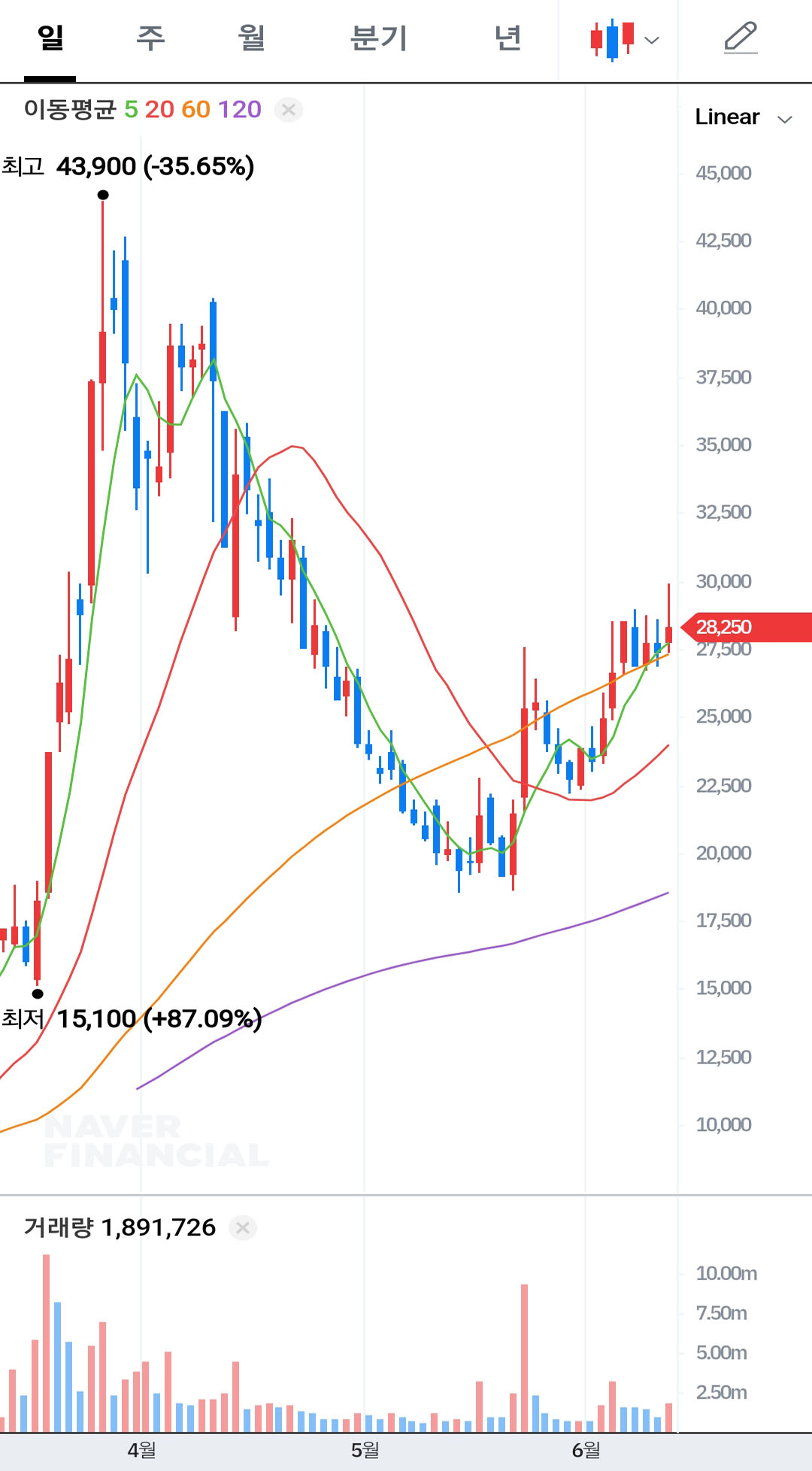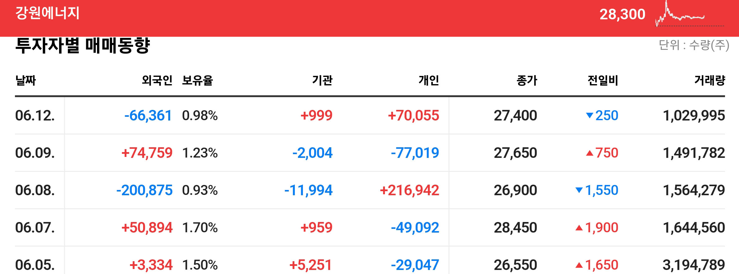 | < 정보 : 네이버 주식정보 06.13 13:40 기준 > | |