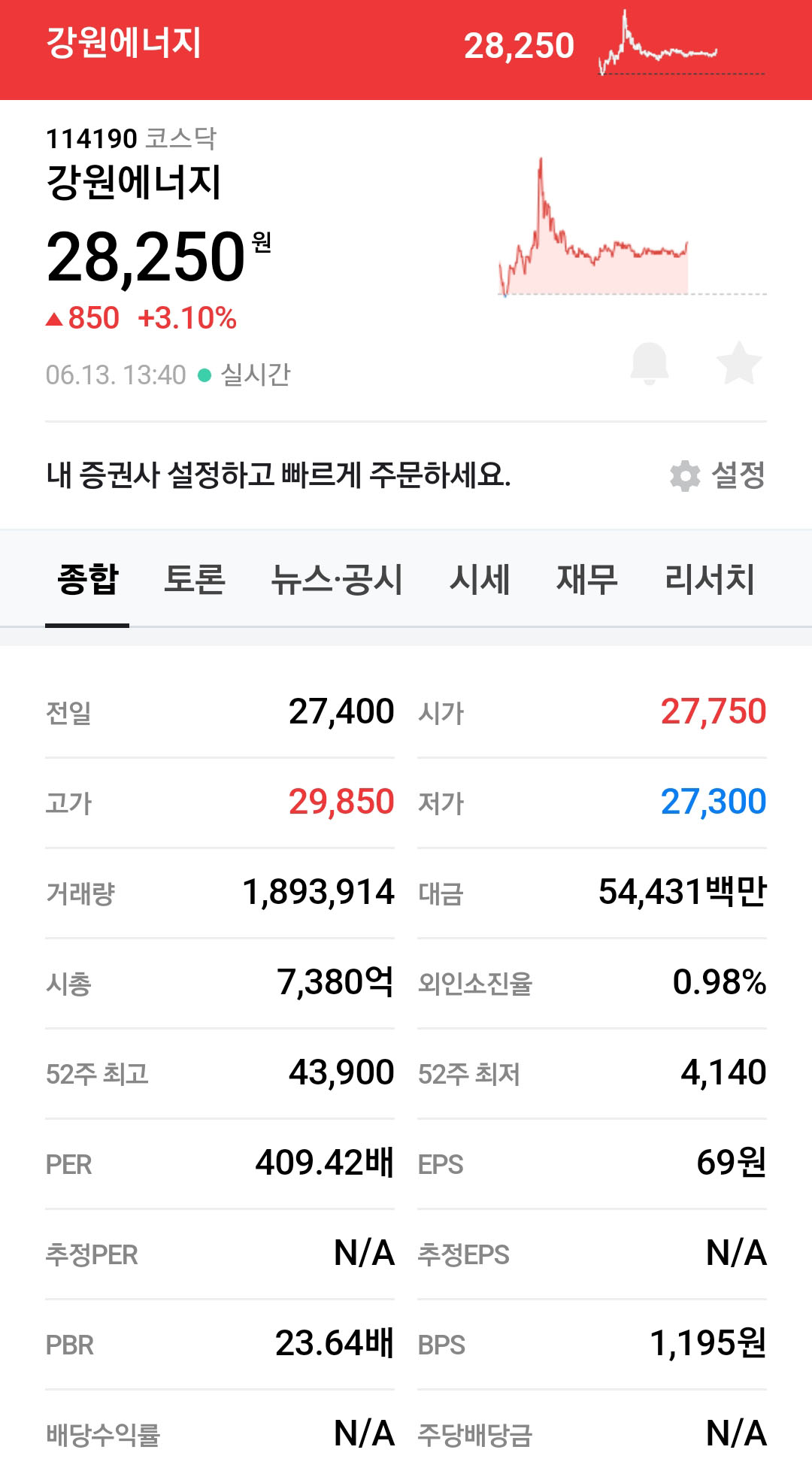 < 정보 : 네이버 주식정보 06.13 13:40 기준 > |