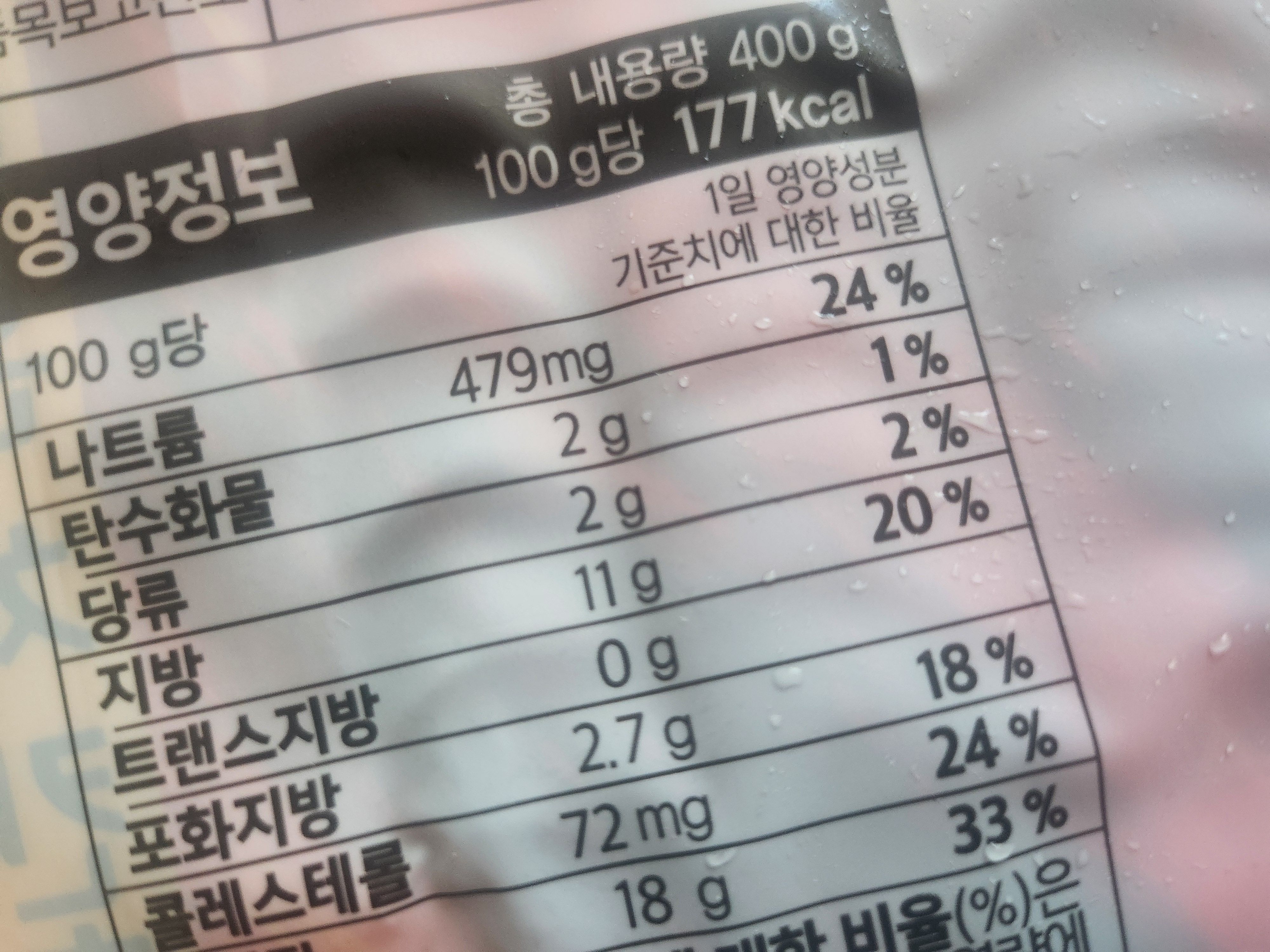 - 트랜스지방은 혈관 건강에 해로우니 0g 확인하세요