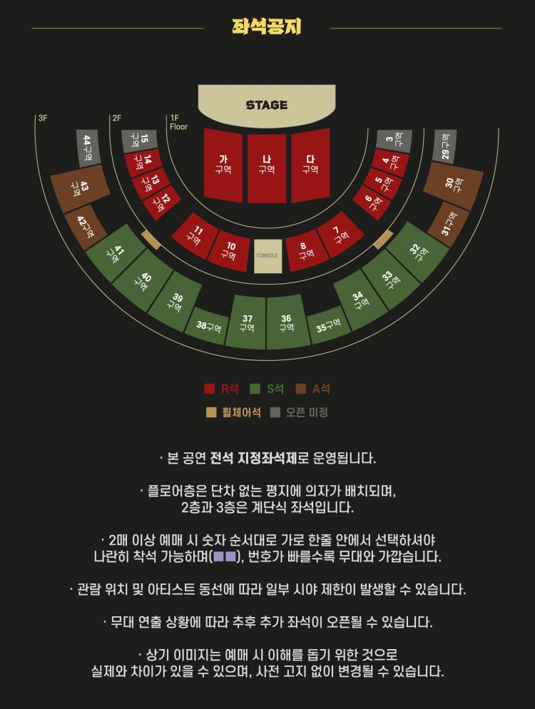 - 공연장 내 물품보관소는 운영되지 않으니 귀중품은 소지하지 않으시기 바랍니다. 본인 부주의로 인한 분실, 도난 시 제작사.예매처에서는 책임을 지지 않습니다.