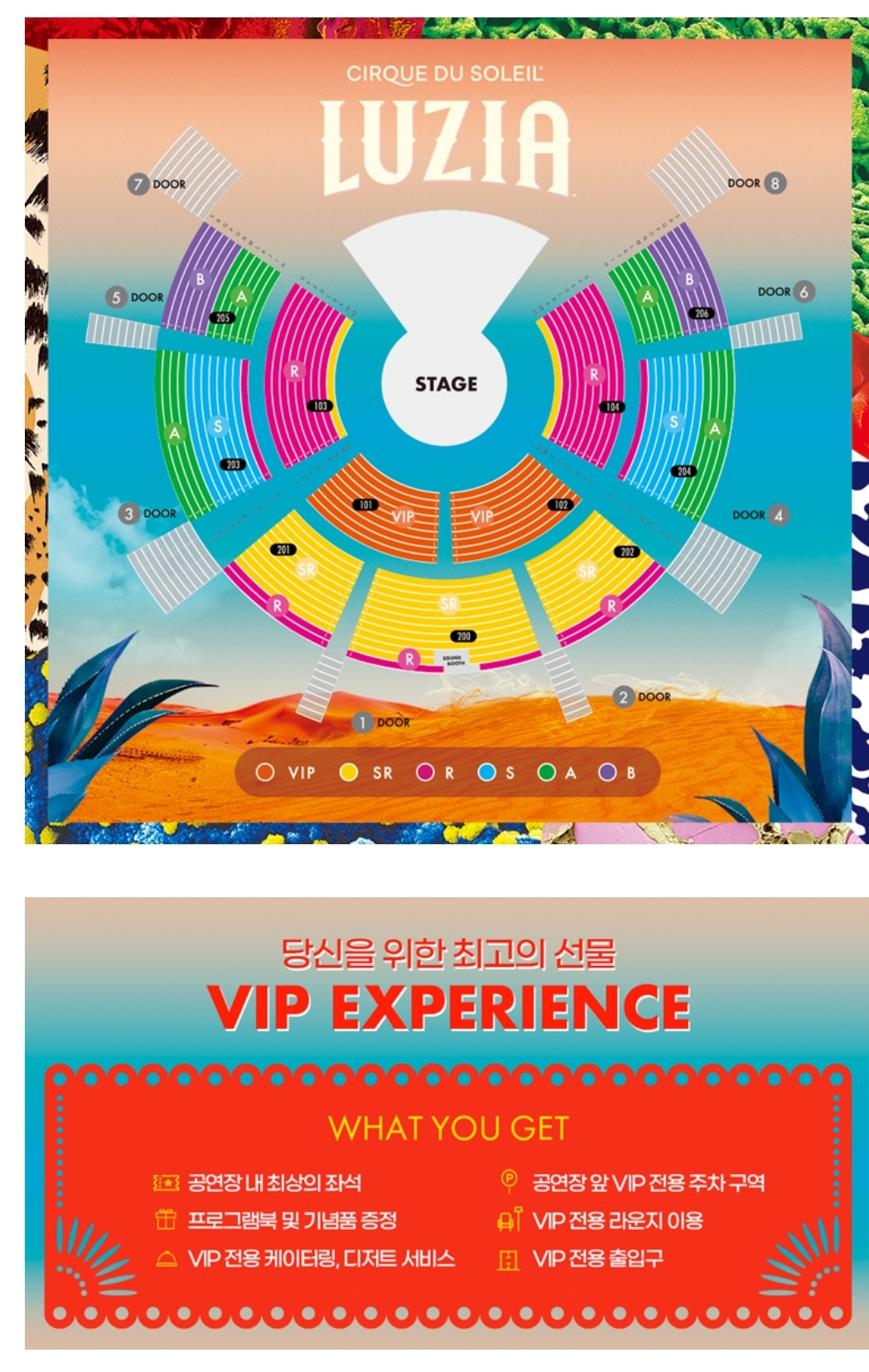 | VIP 석 | SR석 | R석 | S석 | A석 | B석 |