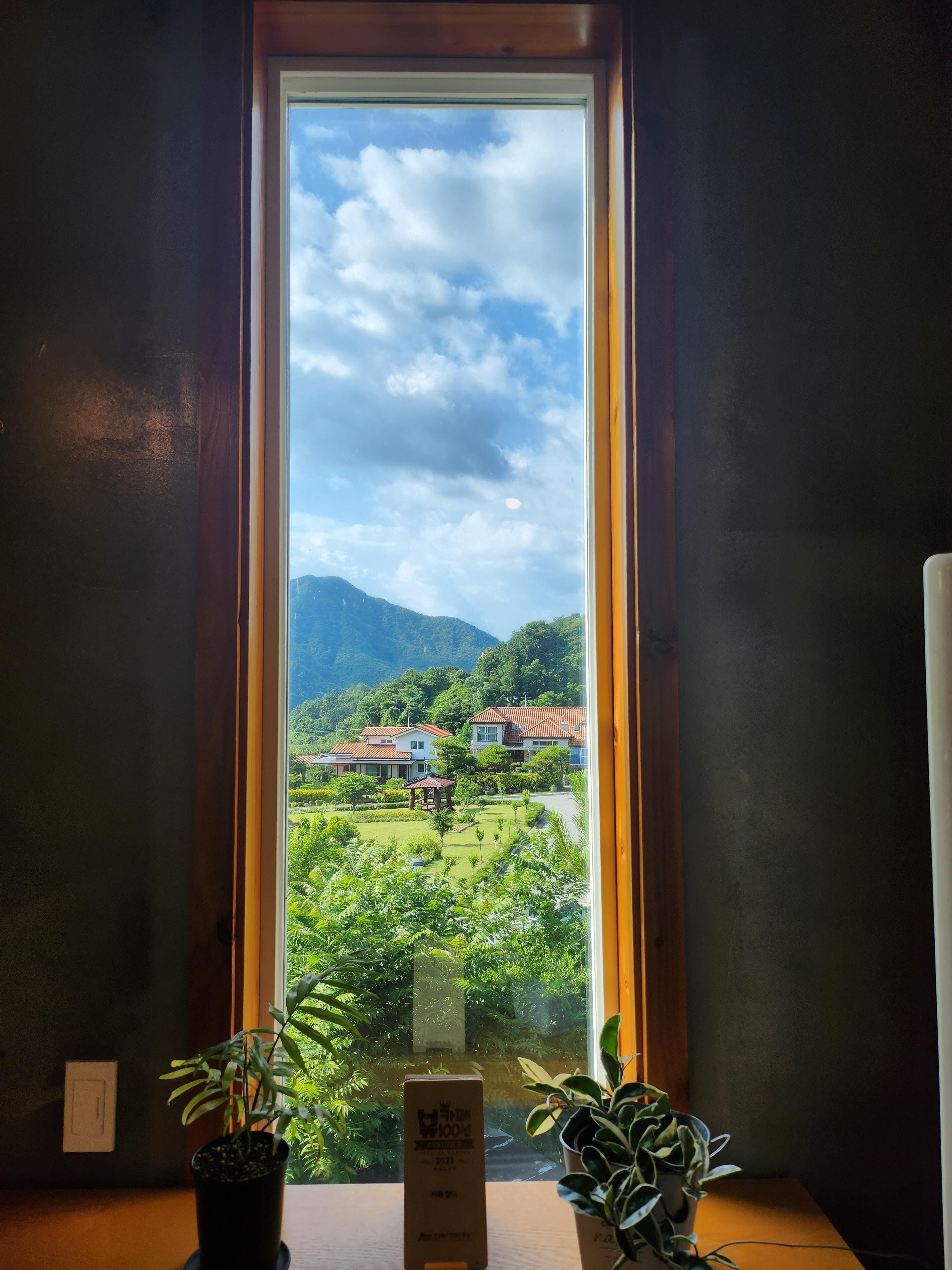 창밖으로 보이는 풍경이 마치 사진속 액자같다.