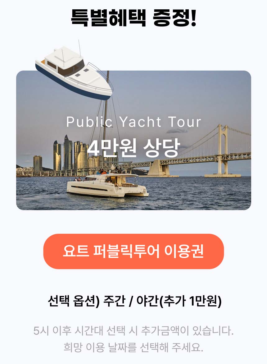 구매자 전원 아일드블루 요트퍼블릭투어 증정 이벤트 진행 중입니다!