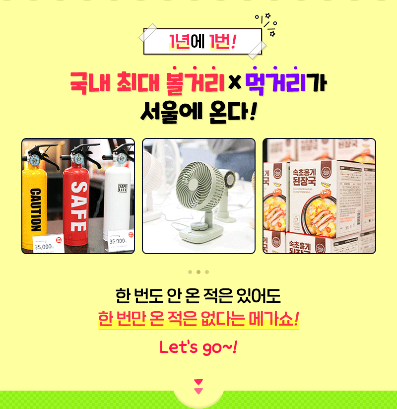 마트나 백화점에서 보지 못했던 다양한 제품들을 한번에 둘러보고 득템할 수 있는 기회입니다.