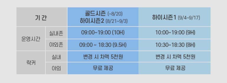 ※ 야외락커 기준 실내락커 변경시 차액 5천원(단, 야외락커 미운영시 실내락커 무료제공)