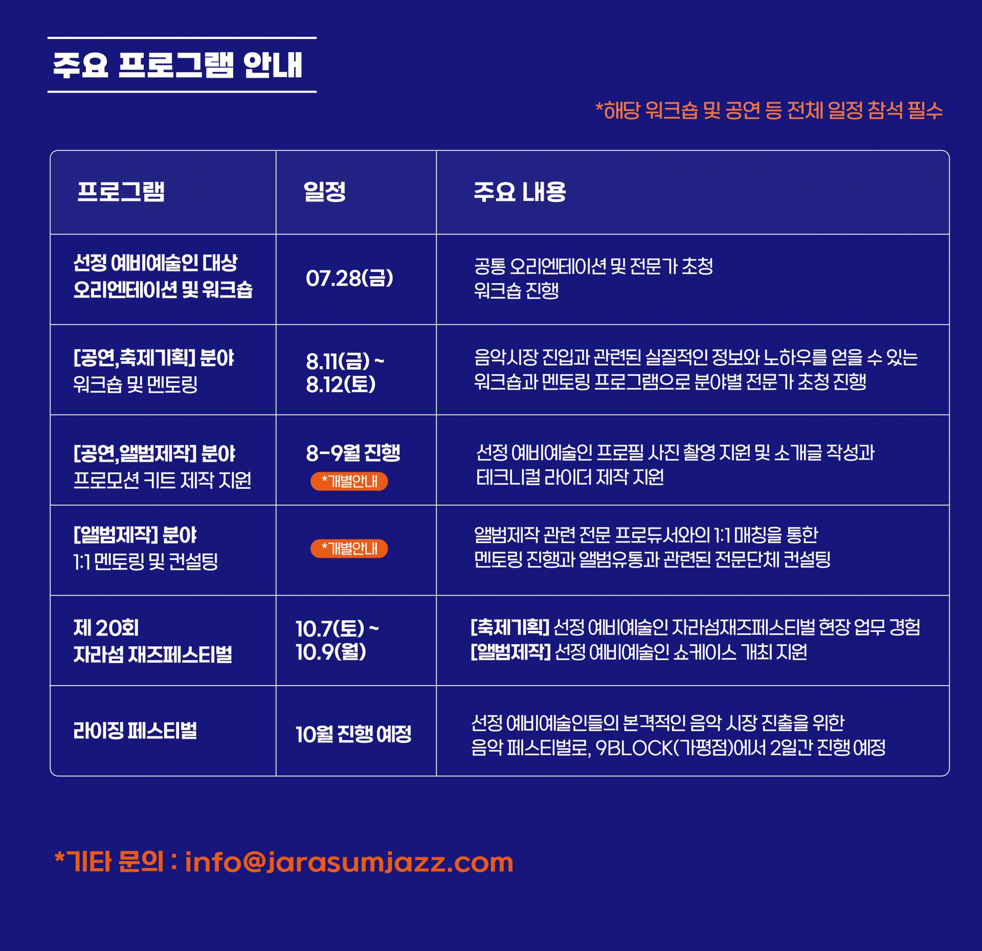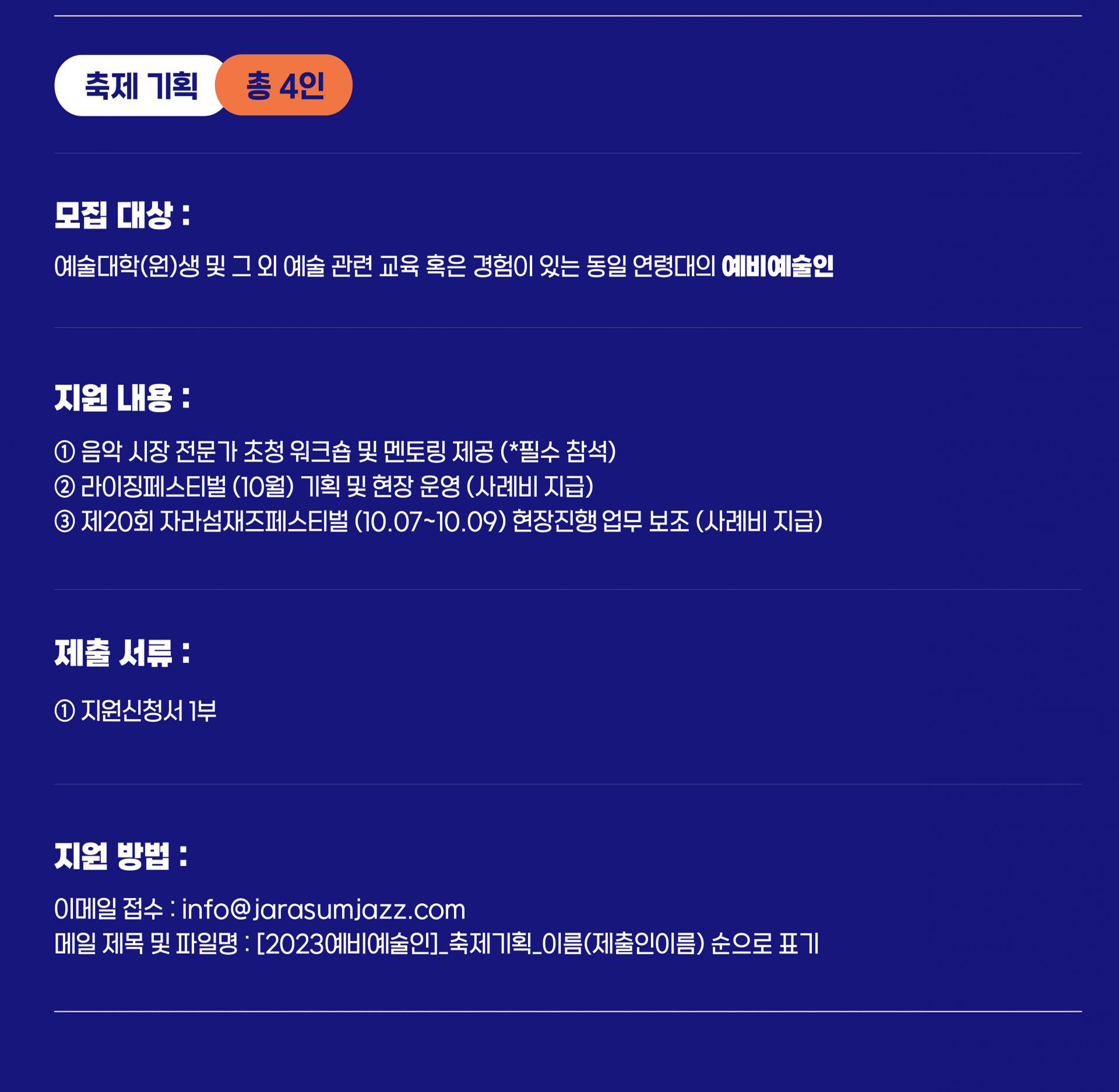 info@jarasumjazz.com으로 지원서 및 해당 자료 제출