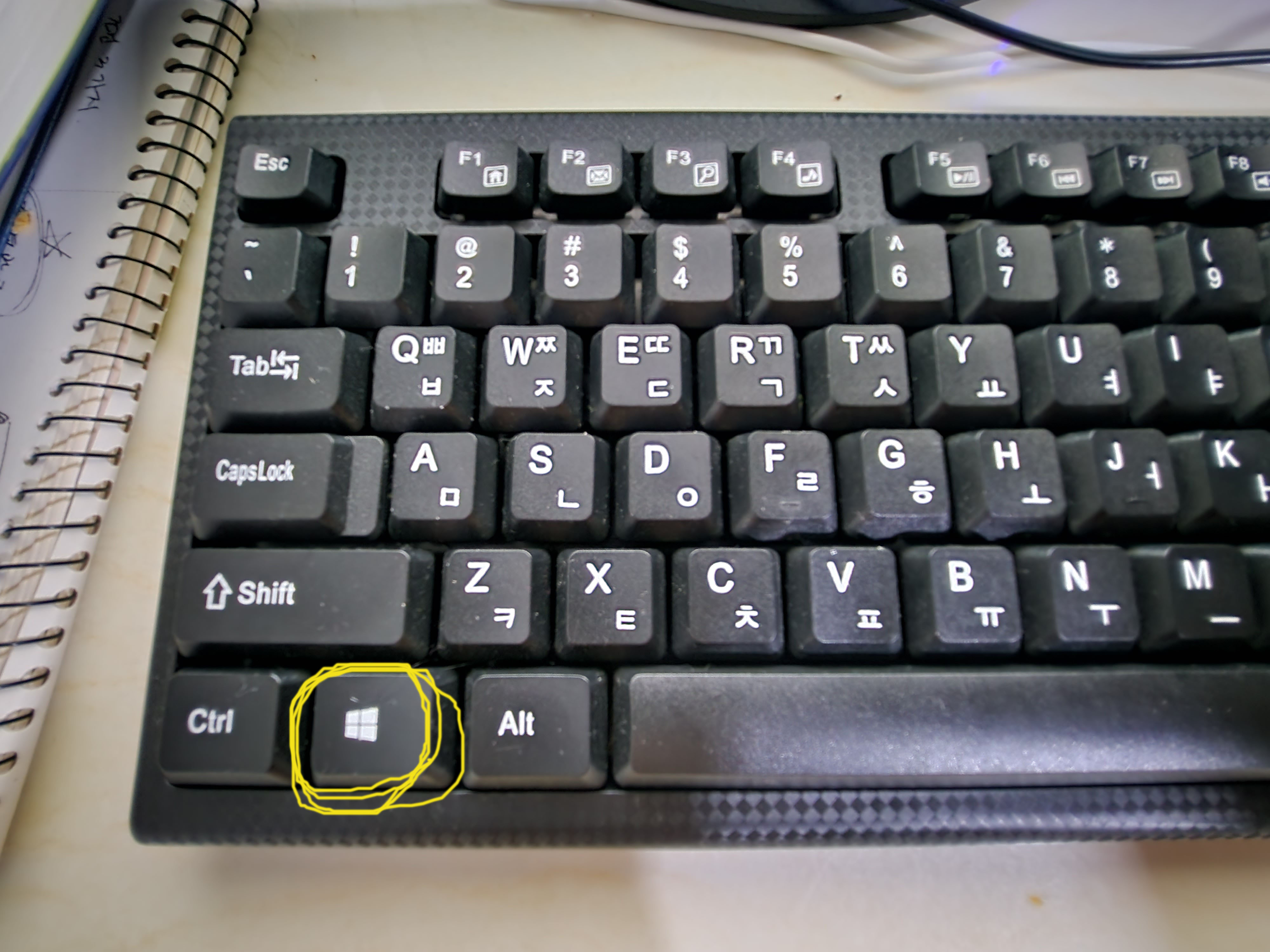 ● 스크린 샷을 찍을 전체화면 설정후 키보드 사진과 같이 [Windows 로고]를 먼저 누른상태에서 상단에 있는 [Print SysRq] 키를 누릅니다.