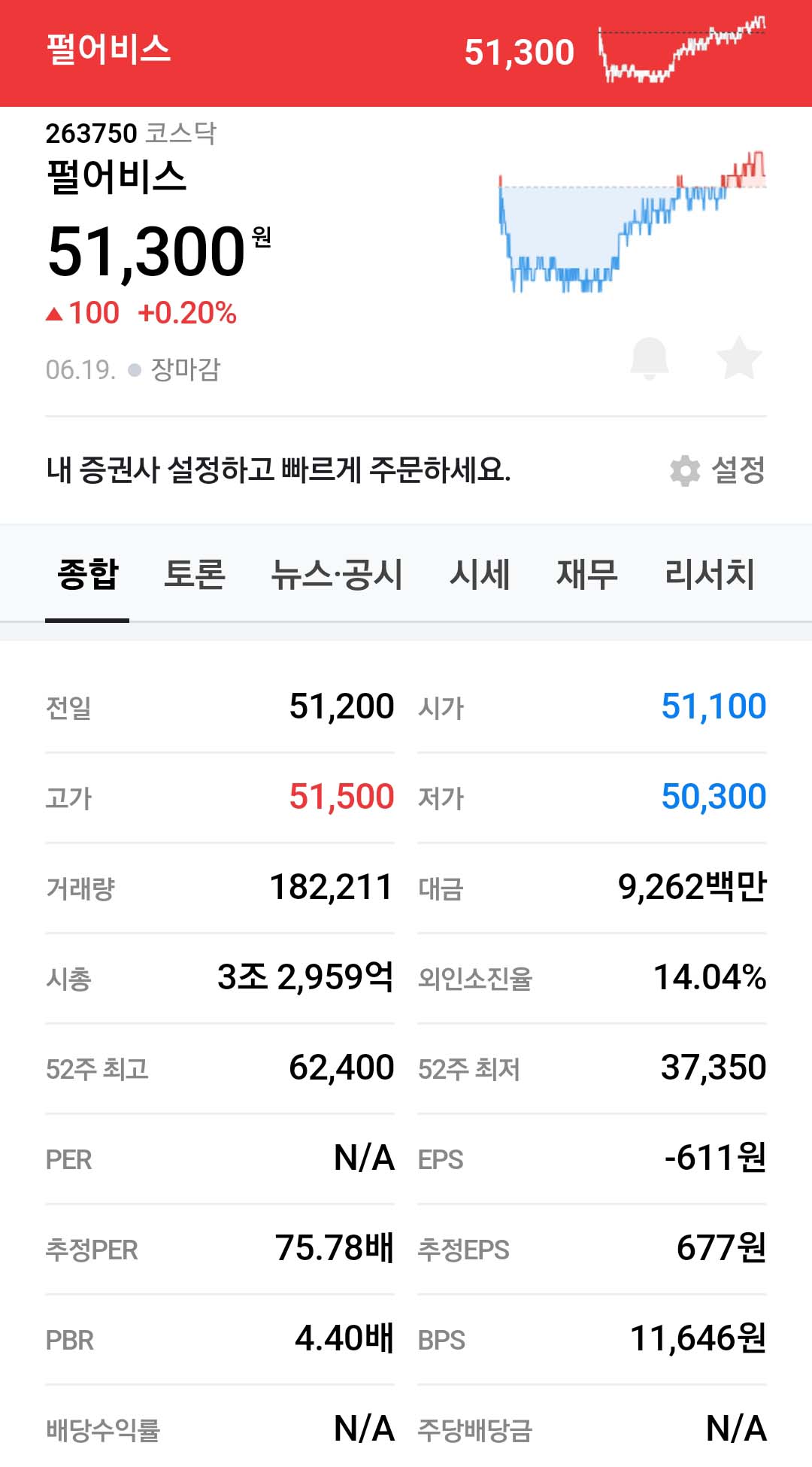 < 네이버 주식정보 06.19 장마감 기준 > |