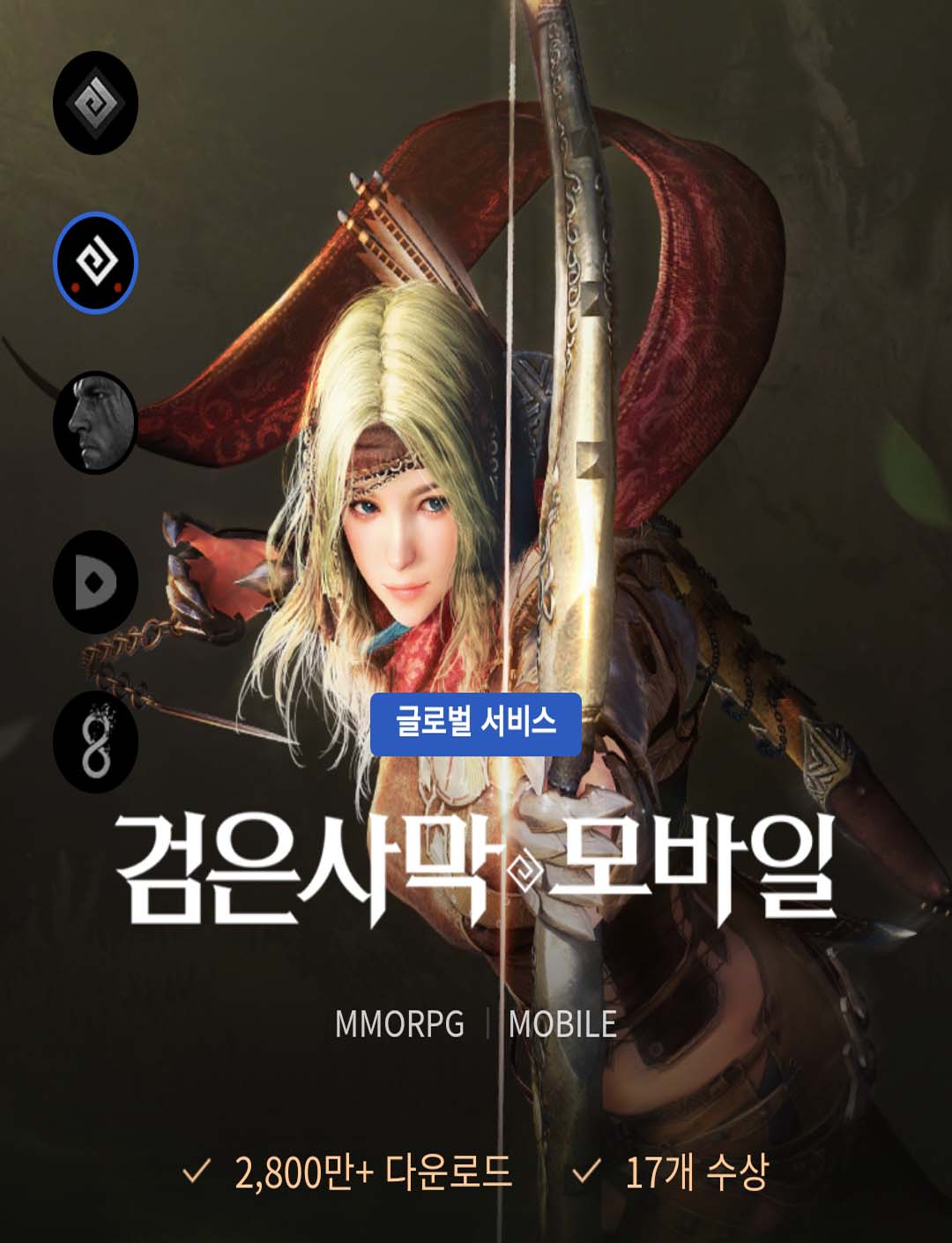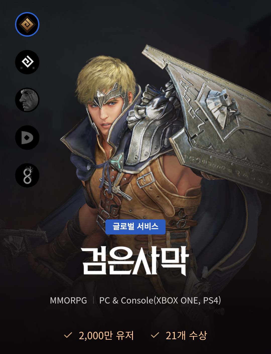 펄어비스 첫번째 작품은 "검은사막"으로 출시 초기 국내에서 게이머들의 관심을 끌지 못했으나, 해외에서 먼저 반응이 오기 시작하였고, 지속적인 인기를 얻고 있으며 2017년 매출 기준으로 세계온라인게임 IP TOP10에 들기도 했다.