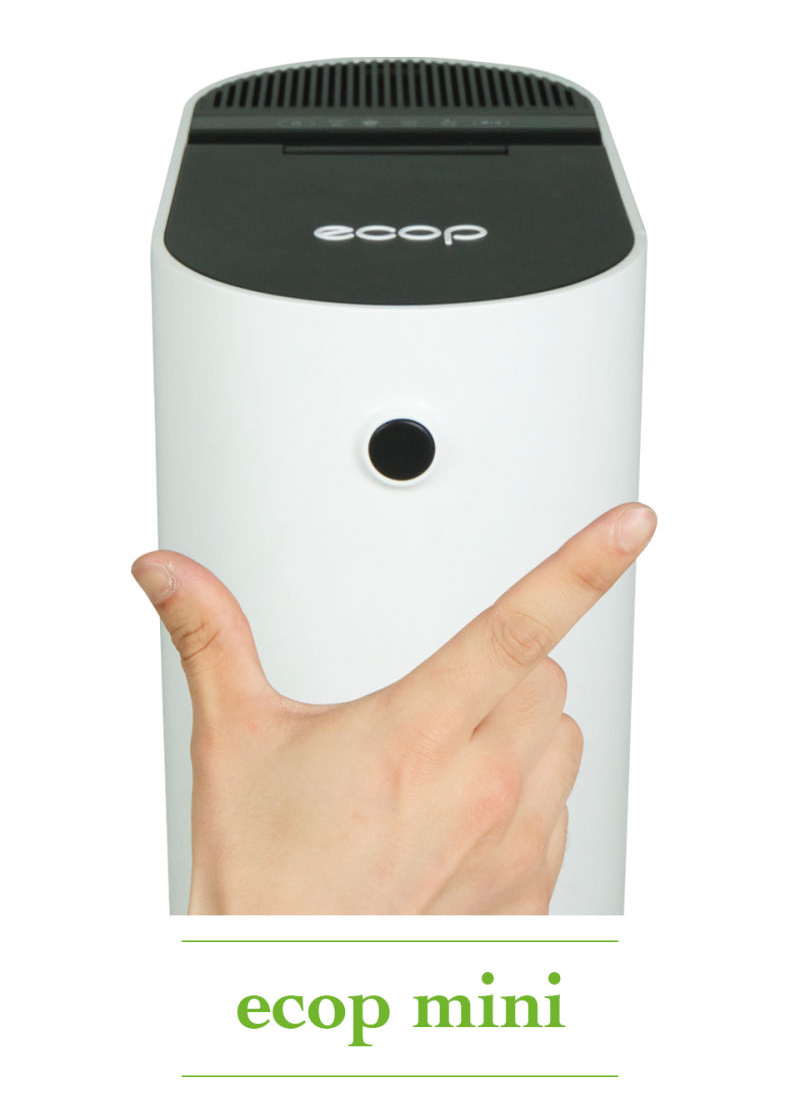 음식물처리기 전문기업 포레가 개발한 에콥미니는 폭이 한 뼘도 안 되는 20cm 내외의 콤팩트 외관으로 한뼘음처리라 불립니다. 하지만 처리용량은 2리터에 이르고, 음식물쓰레기를 4시간 만에 냄새 없이 완전히 건조된 가루형태로 처리해주는 고급 분쇄건조방식입니다.