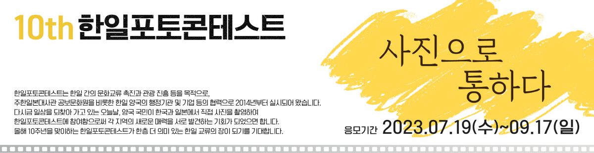 제 10회 한일 포토콘테스트 응모 작품 모집중입니다. 주제주일본국총영사관은 주대한민국일본국대사관 공보문화원을 비롯해, 한일 양국의 행정기관, 지방자치단체, 기업 등과 함께 "제10회 한일포토콘테스트"를 개최하고 있으며 응모 작품을 모집중입니다.
