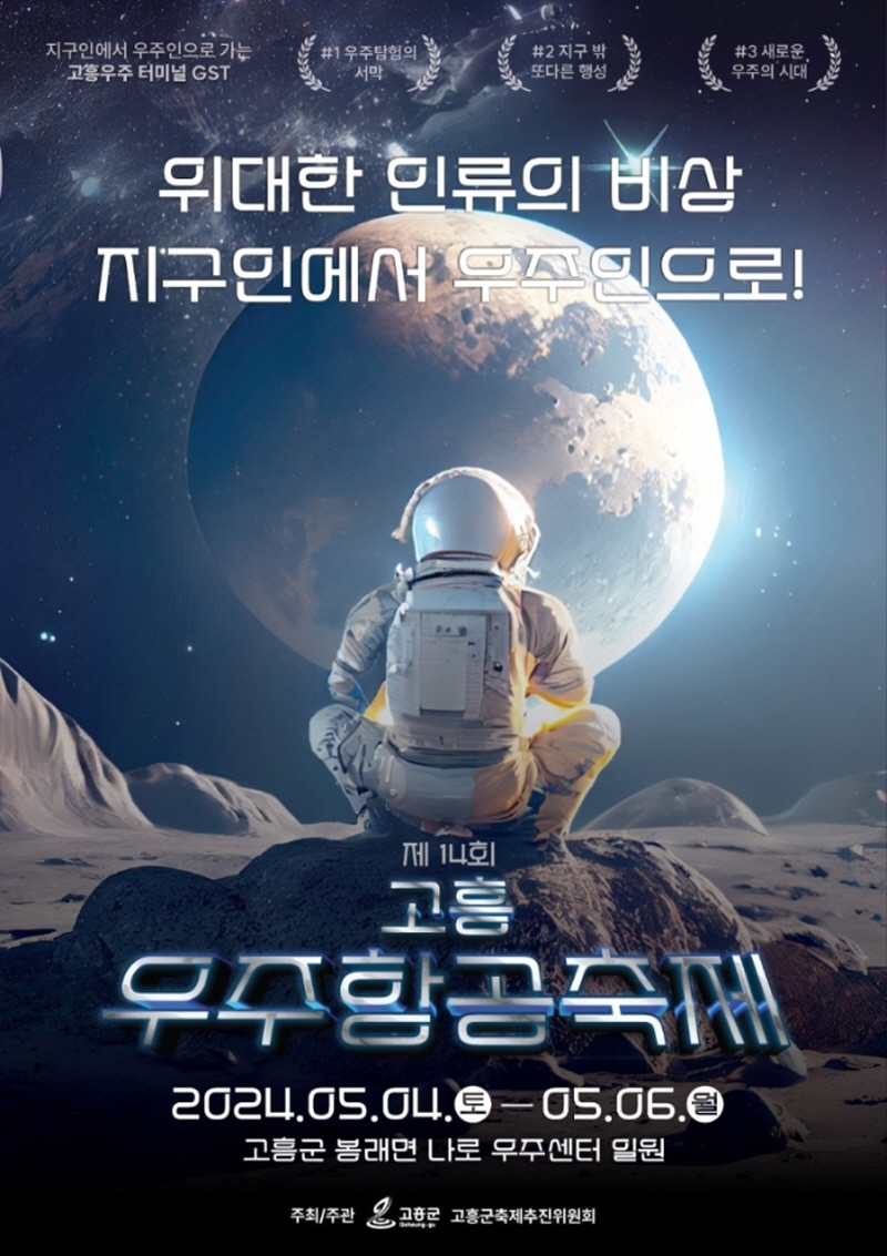 우주항공중심의 도시 고흥, 지구밖 우주로 가는 유일한 플랫폼 고흥나로우주센터에서 제14회 고흥우주항공축제가 '위대한 인류의 비상 지구인에서 우주인으로 - 우리 고흥으로 가지 않을래?' 라는 슬로건으로 개최된다.